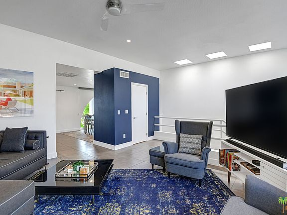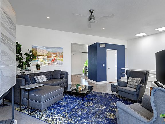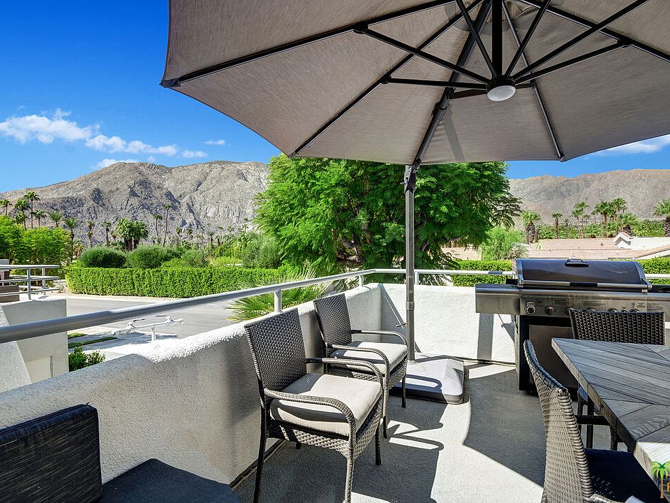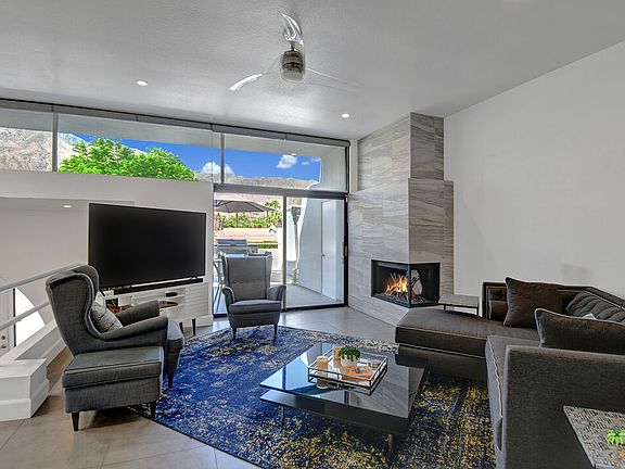 Turn-key FURNISHED fully RENOVATED modern central Palm Springs condo features two primary suites with walk-in closets. This split- level entry condo allows for an upstairs living, dining and kitchen area with a balcony off the living built and furnished for entertaining with breathtaking mountain views. The kitchen includes a walk-in pantry, quartz countertops, stainless steel appliances and an ice maker. The main floor also includes a powder room. Downstairs you will find Dual Primary Suites complete with walk-in closets and dual sink bathrooms. The laundry closet is thoughtfully located between the bedrooms in the spacious hallway. A second patio space downstairs to the backside allows for a more private outdoor experience that is walled and gated. Off the back patio and down a secluded walkway you will find the newly renovated community pool and spa. This entertainers delight is located within walking distance to restaurants, hotels and shopping of the Uptown Design District and a short bike ride to downtown! Furnishings included per seller inventory. No short-term rentals allowed 30 day minimum restriction.