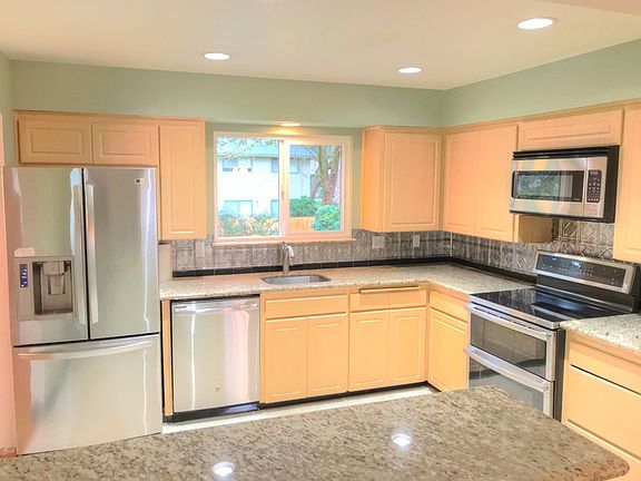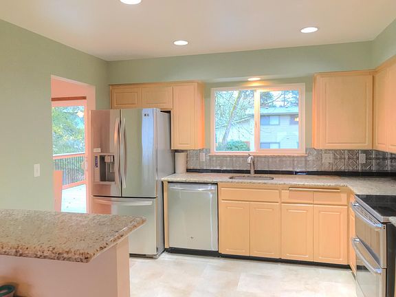 Upper floor: - spacious living room with wood burning fireplace - huge deck overlooking landscaped backyard - hardwood floors throughout - kitchen with serving bar, fridge with ice maker, flat-top electric range, dishwasher, disposal, built-in microwave - master suite with bathroom (tiled shower stall) - 2 additional bedrooms with newly remodeled hallway bath (tub and shower) Lower floor: - family room with laminate flooring and additional wood burning fireplace - bedroom and hallway bathroom (shower stall) - utility room with deep sink and W/D hook-ups - 2 car garage with ample work space (manual doors) - additional storage area under stairs - forced air, gas central heating with air conditioner - spacious backyard - RV parking on side of house - convenient access to shopping, grocery Owner seeking fixed lease through 1/3/2021 at which time they would take possession of the home