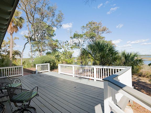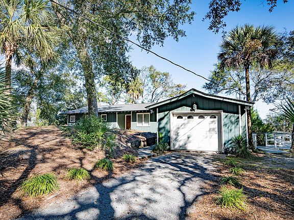 WATERFRONT!! - The premier peninsula lot on Oak Island boasts a breathtaking 270-degree view of Clark Sound from its cozy Chalet-style home. The 3 bedroom, 2 bath abode is ready for your updates and the construction of a very short dock + boat lift on a tidal creek with direct access to Folly River. Or, build your dream home from the ground up just 1.5 miles from the most interesting beach town on the east coast - Folly Beach.When you enter the expansive grounds and home you are immediately transported to island living at its best. Secluded at the tip end of Oak Island's leafy cul-de-sac you will enjoy unobstructed sea breezes and the sounds of coastal wildlife. Come live in paradise on Oak Island. where its estuaries and amenities await you!The home features hardwood floors throughout and plantation shutters on all windows. The primary bedroom has grand water views, loads of closet space and sports an ensuite bathroom with walk-in shower and dual sinks. The great room adjoins the kitchen and dining area and spans almost the entire rear of the home overlooking the waterways and marsh vistas. The kitchen boasts stainless steel appliances including a Samsung refrigerator with in-door water/ice dispenser, Kitchenaid dishwasher, LG gas range and Sharp microwave oven. A nearby laundry room with multiple storage cabinetry includes a Maytag washer and dryer which convey with the sale of the property. The sweeping deck off the back of the home is the perfect place for outdoor grilling and relaxing while enjoying the privacy and the spectacular long view across Clark Sound. There is also a one-car garage with an automatic garage door.