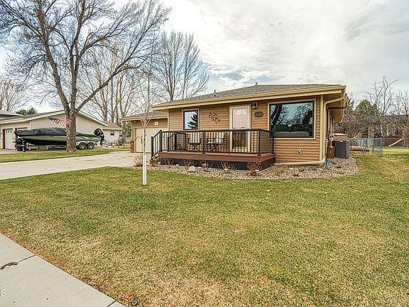 METICULOUSLY well-kept home offered by original owners with TONS of updates! This adorable ranch-style home in south Bismarck has incredible curb appeal as you see the new seamless steel siding, new windows, new maintenance free deck, professional landscaping and east-facing driveway. The convenient floor plan of the main level includes a large living room, eat-in kitchen, THREE bedrooms on the MAIN floor, and a beautiful bathroom with walk-in shower. Downstairs you'll find a large family/game room, a bonus room that has previously served as a 4th non-conforming bedroom, a second updated bathroom, and a huge laundry and project room with wash sink and tons of storage. There also is a little workshop nook. There are too many updates to list—ask your agent for the full list available for download. The oversized double garage includes a host of cabinets and workbench, is heated, has updated electrical, and leads to the FULLY FENCED back yard. You'll love the patio, THREE sheds, garden spots and mature trees in the yard. An extra concrete pad is on the side of the home as well. No specials balance! Make an appointment to see it right away!