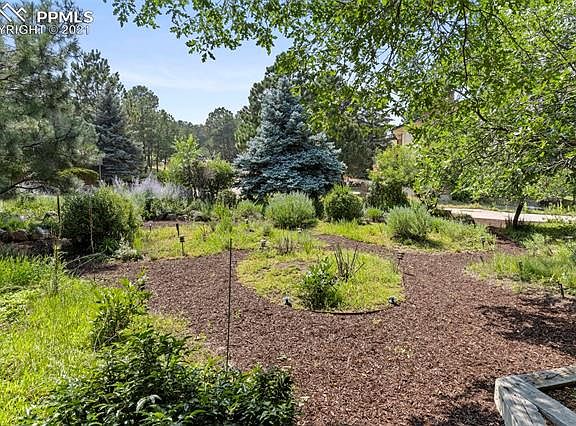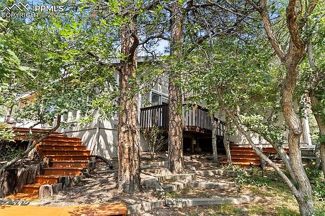 Beautiful 1/4-acre wooded lot in Erindale Heights combines native pines & Gambol Oak with extensive flower gardens, a pond & secluded sitting areas. The property is located on a quiet cul-de-sac, close to trails in Pulpit Rock Park and along Cottonwood Creek, in a neighborhood with a mountain feel featuring rock outcroppings & abundant natural vegetation. The home includes brand new roofing & gutters and handsome, traditional hardwood flooring in the remodeled kitchen! There is a choice of eating spaces in either the dining room or built-in breakfast counter at the kitchen island. On the upper level are two bedroom suites plus a loft with built-in bookcases and a private balcony for the master bedroom. Central A/C and shade trees provide seasonal comfort throughout. The third bedroom, with hardwood floor, is on the main level and currently being used as an office. A 2-sided gas fireplace offers warmth and ambiance to both the living room & family room. Quality plantation shutters and Silhouette shades complement the clean lines of the home design. Outside is covered RV parking, recently resurfaced blacktop driveway, an irrigation system for the landscaping and newly re-stained redwood multi-level & wraparound decking. I-25 and Woodmen Road are both less than 5 minutes from the house for convenient commutes in multiple directions.