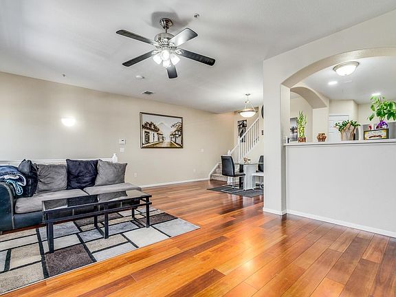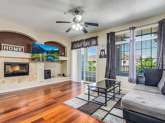 Super nice 2-story townhome in a quiet location and mountain views from the bedrooms! Boasting newer carpet, laminate wood flooring and newer stainless steel appliances, this spacious home is a must see! The main floor features a beautiful gas fireplace with tile surround and a great room design incorporating the nearby kitchen with bar and dining areas to complete an entertainer's dream! Don't miss the large pantry and many cabinets. Covered 2nd-floor balcony provides a quiet getaway. Upstairs, 2 large bedrooms offer penthouse views of the mountains and surrounding areas. The Master boasts dual large walk-in closets and master bath. A spacious secondary bedroom, full bath and laundry room complete a thoroughly modern floorplan .This light and bright townhome is nestled at the center of a lush, quiet community with a fabulous pool, hot tub, and kiddie pool. A detached garage right out your front door plus plenty of visitor parking make this a very complete lifestyle!