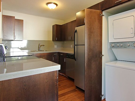 We are offering for rent a completely renovated 2-bedroom/1 bathroom upstairs apartment in The Westland building located in the Westmoreland/Sellwood neighborhood. We are now accepting applications for this home. None of the units at this property are disabled accessible units. " Our website also has photos, a walkthrough video and more information. Rent is $1,749/month, plus each tenant pays $50/month as a water/sewer/utility supplement. Tenants are responsible for their own electric bills (lighting and heating) and any phone or Internet desired. Landlord pays for trash/recycling and water/sewer. We will require a strong rental history, good credit, and a $1,749 refundable security deposit. No last month's rent deposit is required. Tenants must carry their own separate liability insurance policy for damage to the apartment and to cover apartment contents. One or two spayed/neutered cats or dogs are acceptable with pet rent of $35/pet/month (breed restrictions apply). Maximum 2 animals total. No additional pet deposit is required. This is a smoke-free building, so no smoking in any of the units or within 30 feet of the building. This upstairs apartment also features the following amenities: --Hardwood flooring in the kitchen and living areas and newer carpet in the bedroom. --Contemporary dark wood cherry cabinets with stainless steel pulls. --Open-concept kitchens with ceramic counter-tops, back-splashes and eating bar. --Modern kitchen appliances including smooth-top range, fridge, full-sized dishwasher, disposal and vent hood. --In-unit washers and dryers. --Large bedrooms, each with large closet. --High-efficiency zonal electric heating system and updated double-pane windows. --Recessed lighting in the living room. --Updated tile, mirror, tub, lighting and fixtures in the bathroom. --Fresh paint and blinds throughout the units. --One reserved off-street parking space in building's parking lot. --One large private storage unit for each apartment. The Westland Apartments building is located at 1530 SE Reedway in the Westmoreland/Sellwood neighborhood of Portland. The building offers easy access to downtown Portland, OHSU, the eastside green way bike path, the MAX Orange line, and all the great restaurant and shops in Westmoreland/Sellwood.