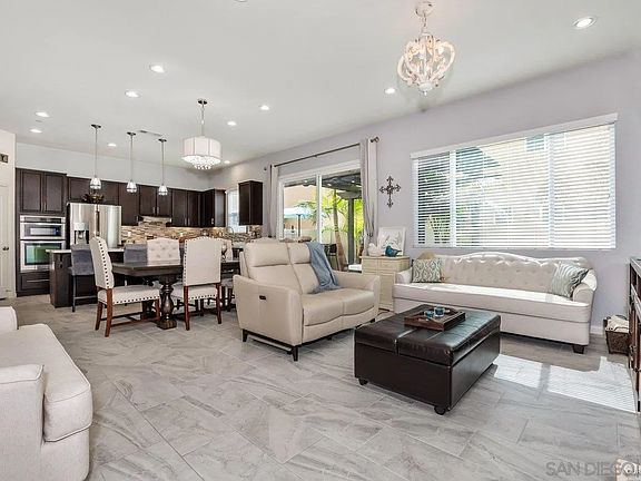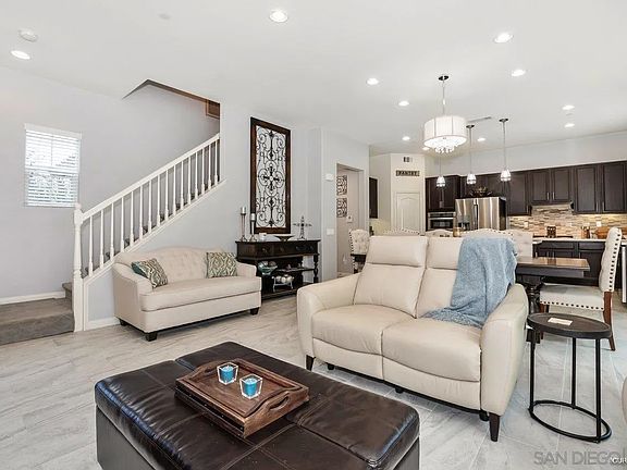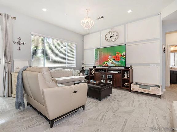 Back on Market due to no fault of home. This is the one. As you enter through the custom designed iron door you are welcomed to a bright and open concept kitchen and family room where you’ll find quartz counters, high-end KitchenAid appliances, an office that instantly transforms to a guest bedroom via a murphy bed, and a resort-style backyard where you can grill on your built-in BBQ, soak in your private spa under the shade of your mature King Palm trees while listening to the trickling water from your two water features, gather around a fire from built-in sitting benches, plant herbs in your raised planter bed or enjoy the nights under a twinkle-lit pergola. On the second floor you'll find the primary bedroom and ensuite bath, two secondary bedrooms, one that's twice the size of a standard room, plus a custom glass-topped work station, perfect for home-schoolers or crafting. The third-floor sanctuary includes a private bedroom, full bath, and separate living, working, or gaming area, featuring a built-in bar where you can sip coffee while watching the sunrise over the mountains, perfect for any guest, in-law, college student, or teenager. The Otay Ranch planned development offers most anything you’ll desire, from an outdoor mall, to numerous retail stores, restaurants, and grocery stores. Within the Village of Montecito you’ll enjoy numerous parks, two pools, playgrounds, a community center, walking paths and much more. Only minutes to the I-805 and I-125 freeways, so you’ll have an easy commute to area bases, downtown, and beyond. Did I mention 19 Paid Solar Panels, Wow!