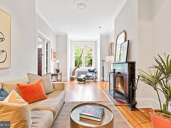 Open Saturday 9/10 & Sunday 9/11 from 12-2pm. A crisp expanse of like facades harkening back to an era where charm and quality walked hand in hand with classical style and craftsmanship welcomes you to 1530 T Street NW. Set subtly off the generous sidewalk on the south side of T, 1530’s warm Flemish bond brick patterns rise up elegantly off the landscaped yard punctuated with a mature weeping cherry tree, which perfumes the spring air and delights passersby with her blossoms. Up a short original cast iron staircase, the front door, solid and reassuring, completes the journey back in time. Step inside this sophisticated and timeless 3 bedroom, 2 full bath rowhome with generous outdoors space and parking for two cars. The original hardwood floors and impressive natural light welcome you to explore beyond the elegant pocket door and into the formal living room with bay window and wood-burning fireplace. French doors frame your entrance to the expansive dining room featuring a decorative fireplace, oversized window, and perfectly preserved built-in hutch with original glass panes and decorative hardware. The full bath exudes vintage charm, with a window and tub. Next you'll find the updated kitchen with endless cabinet space, stainless steel appliances, granite countertops, and direct access to your deck, patio, and parking. Options for outdoor entertaining abound, with a raised deck overlooking your mature garden and flagstone patio - plus easy access to the home's lower level. Whether your lifestyle demands a home gym, a home office, or even a movie theatre, this finished basement provides ample opportunity for customization. This floor has high ceilings, beautiful virgin brick, four windows, plenty of storage, laundry room, and access to your outdoor space. The top floor of this home is bathed in natural light from front to back, including a skylight atop the staircase. The primary bedroom offers commanding views of charming T Street, unique double palladian windows with custom shutters, decorative fireplace, and a walk-in closet. There are two large additional bedrooms with southern-facing windows. The upstairs full bath features timeless marble tile and a glass shower, and updated floating vanity. This home is ready for the next owners, just professionally painted and the HVAC replaced only 2 years ago. Located at 16th & T, this home is blocks from everything Dupont, Logan, and U Street have to offer - including beloved Ross Elementary School.