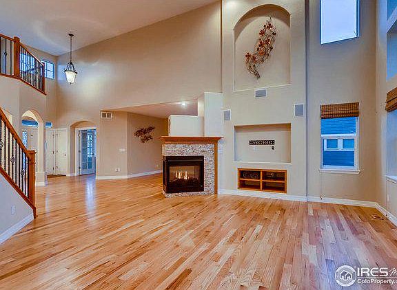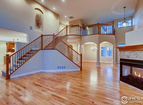 Fabulous home in SW Longmont's Meadow Mountain neighborhood. View location looking out across Blue Skies park at Longs Peak. Vaulted great room with a wall of windows and a three-sided fireplace and double-sided staircase with wrought iron banisters. Slab granite surfaces, cherry cabinetry, breakfast bar/nook and stainless appliance package with double ovens and gas range in the kitchen. Hardwood flooring throughout the main level which also features an office, dining, living, and laundry rooms. Luxurious master suite with fireplace, jetted tub and slab granite surfaces. Upstairs loft could easily be 4th bedroom and unfinished basement provides future expansion possibilities. Great schools! Close to Seagate & IBM and an easy drive To Boulder!
