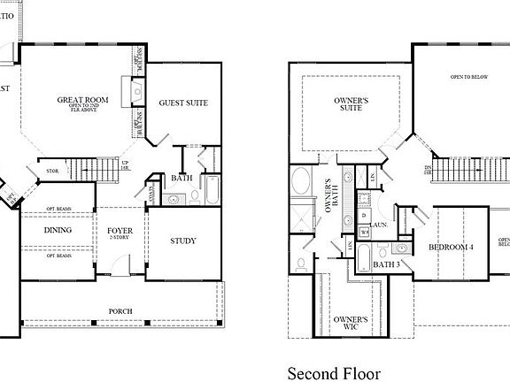 This 2-story plan provides considerable flexibility with a formal study, which can also be used as a flex area, and a guest suite on the main level with a full bath.. This home design's appeal extends to the large open kitchen with spacious center island, amazing counterspace, corner walk-in pantry and eat in breakfast area with patio access. A perfectly situated mud room is located off the kitchen and garage. The great room includes a dramatic vaulted ceiling, fireplace, optional built-ins and tons of natural light from the window wall. A large formal dining room with easy access to the kitchen and great room can also be found on the main living area of this plan. The second level of this home features three secondary bedrooms, two secondary bath and the laundry room. The exquisite owner's suite with tray ceilings features a garden tub, separate walk-in shower, dual vanities and large walk-in closet. A centrally located full bath and a linen closet in the hallway competes the second level of this sought-after plan.Personalization options: Sink in laundry room, butler's pantry off of dining room, beams in dining room, built-ins in great room, grand shower in owner's bath, raised bonus/media room, raised retreat off owner's suite.Note: Included features and structural options may vary per community. Offers are subject to changes, omissions, and errors. Please see a new home specialist for pricing and details.