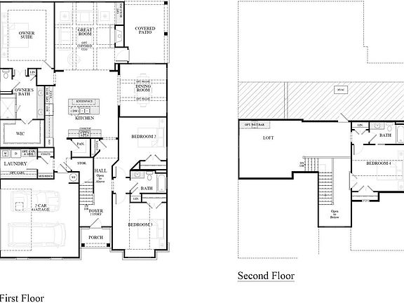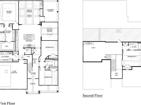 Newly designed ranch plan!. Highlights include a designated foyer area, a full mud room conveniently attached to the central laundry room and ample storage closets throughout the common areas of the home. The chef's kitchen offers a huge center island and abundant perimeter counterspace for all cooking and entertaining needs. An impressive walk-in pantry can also be found for endless storage. The bright and open formal dining room offers a great view of the covered patio. Nestled in the rear of this home sits a stunning great room with fireplace, optional built-ins and easy access to the covered rear patio. The spectacular owner's suite with tray ceiling showcases its own vestibule, a stunning walk-in shower, linen closet, dual vanities and walk-in closet. Two spacious secondary bedrooms with private closets and a full bath with linen closet complete the main living area of this plan. The second-floor bonus areas reveal a large loft/flex area with an optional wet bar and a fourth bedroom with a closet and a third bath with linen closet. Personalization options: Exterior fireplace, cabinets in laundry room, sink in laundry room, butler's pantry in kitchen, beams in dining room, coffered ceiling in great room, built-ins in great room, fifth bedroom and fourth full bath upstairs. Note: Included features and structural options may vary per community. Offers are subject to changes, omissions, and errors. Please see a new home specialist for pricing and details.
