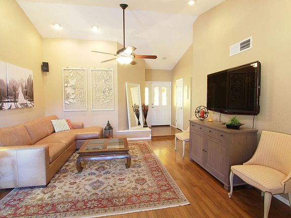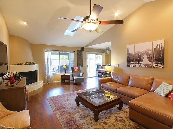 Welcome home! This lovely Chandler home greets you with wood look laminate flooring and high vaulted ceilings for an open and airy feel. Spacious living room with built-in Bose speakers & wood burning fireplace is great for entertaining! Open to the dining room, the upgraded kitchen features white cabinets, black granite countertops, stainless appliances, walk in pantry, and more! Master bedroom has a huge walk in closet and sliding glass door exit to the backyard. Enjoy your private backyard retreat featuring a built-in BBQ, salt water pool, outdoor speakers & horse shoe pit! Located just minutes from the 101 freeway and the Western Canal, this oasis is perfectly equidistant from both Downtown Gilbert & Chandler; making both reachable by bike. So, whether it's a dip in the pool