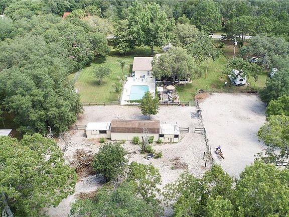Here.....we have Class and Country all in one! This move in ready 3 bedroom, 2 full bath, 2 car garage ranch is full of character, entertainment and enjoyment!! You have the full length screened in lanai with 2 sets of sliders, hot grilled food on the recently built over sized wood deck, refreshing roomy lit up in ground pool and heated above ground spa with all your fur babies running around in this beautiful spacious yard. This updated cozy home with stone fireplace sits approximately in the center of the 1.15 acres and is surrounded by lots of newer and older homes with a front open porch to enjoy the peaceful country with lots of mature beautiful landscaping. Your horses, goats, chickens etc. will be so happy to run abroad their spacious area completely secured in by the surrounded fence line of the entire property with beautiful front wrought iron gate with circle driveway for entrance. They also have a lovely barn with horse stalls depending on size of horse/ponies with chicken coupes, rabbit cages and so on. Lots of storage space in the lofts of the barn to keep all of your extra stuff. Bring all your fur babies and enjoy!!
