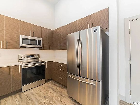 Modern 2BR/2BA Apartment Open Layout, Great Location! Newly built 2-bedroom, 2-bathroom apartment with high-end finishes and a bright, open layout! The spacious living area flows into a modern kitchen featuring dark quartz countertops, sleek white cabinets, and stainless-steel appliances. Enjoy tons of natural light from oversized south-facing windows and two sliding glass doors. Each bedroom has its own en-suite bathroom perfect for roommates or guests. The master includes a large walk-through closet. In-unit washer and dryer make laundry easy, and upgraded "Lifeproof" vinyl flooring adds durability throughout. Relax on the oversized patio with direct access to the parking lot. Secure keypad entry, and just 2 miles from the Nine Mile Light Rail Station and a mile from Cherry Creek State Park. Don't miss out schedule a tour today!