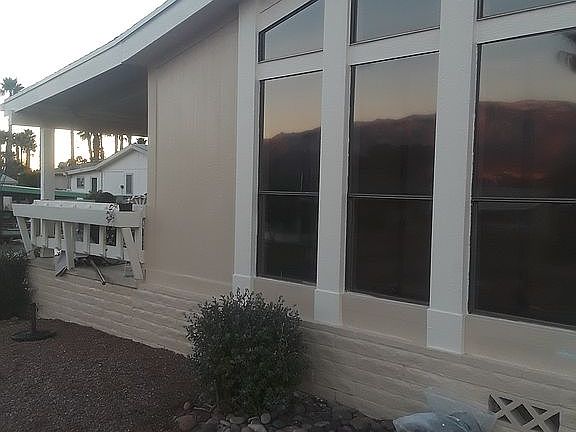 Snowbird paradise in Quail Ridge Estates.OUTSTANDING MOUNTAIN VIEWS from full side porch. ***price includes new ROOF (2020) w 40 year shingle and 5 year transferable warranty**** and fresh paint ext/int TAPE AND TEXTURE throughout (No popcorn) NEW KITCHEN redesigned with all SAMSUNG appliances and GAS range with built in griddle, and microwave, 1 1/2 HP disposal and 25 CF refrigerator. Separate newly remodeled laundry with cabinets and custom built storage with custom barn door. Hall bath features curved tub/shower enclosure granite topped vanity w/oil rubbed bronze fixtures. NEW flooring, plush carpet w/memory foam pad, all NEW lighting, PEX plumbing under home and NEW under all sinks, Vaulted ceilings, LR windows to the vault, slider out to the patio and MOUNTAIN VIEWS. Light, bright and neutral. 2 beds, 2 baths HUGE MASTER Suite, private updated bath with makeup and dressing area. Custom built master closet with gliding barn doors. Stunning! Quality. This park is a community of homes. Doubles and triples only, with siding and comp shingle roofs. There is a fenced and lighted dog park, pool, indoor spa, fitness center and community activities. This park was considered the best kept secret in Catalina. Washer and dryer included. Bronze chandelier available as included option. USB plugs in kitchen,utility,master bath.Some furniture available for additional cost.