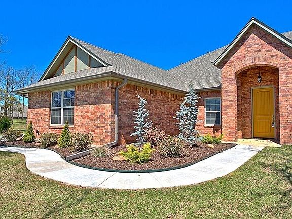 Outstanding home in Choctaw schools on 3/4 of an acre with 4 bedrooms, 3 full baths and 3 car side load garage, formal dining, study, utility room, corner fireplace, inviting covered back patio and so much MORE! If you are looking for a true mother in law plan this is it!! 2 master bedrooms with full baths in each. Spacious kitchen with elegant granite counter tops, gas stove, large panty and stainless steel appliances including the refrigerator. Custom trim and cabinetry through out. Private water well. Community swimming pool, splash pad, basketball courts and even a dog park! Shop building approved community. Front and back sprinklers, fully fenced, 11 to 12 person storm shelter. This home has been perfectly maintained by one owner! Call today!!
