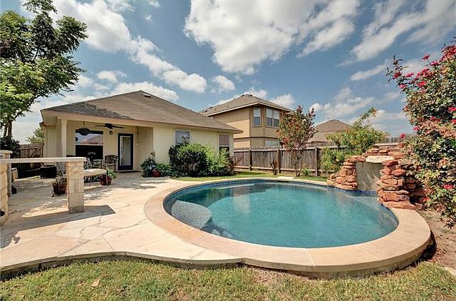 LOWEST PRICE PROPERTY WITH PRISTINE POOL IN AUSTIN. This house is improved and ready for you to move in NOW! Sellers painted neutral colors just for you!!! Enjoy the stained concrete floors, beautiful granite counters in kitchen and bathrooms, awesome pool with water fall, limestone-laden outdoor built in kitchen, covered patio to get out of the sun. Its your oasis! Gas appliances help keep utility costs low and hot gets HOT when you need it! The garage can easily fit two SUVs (See photo!) Don't miss out!