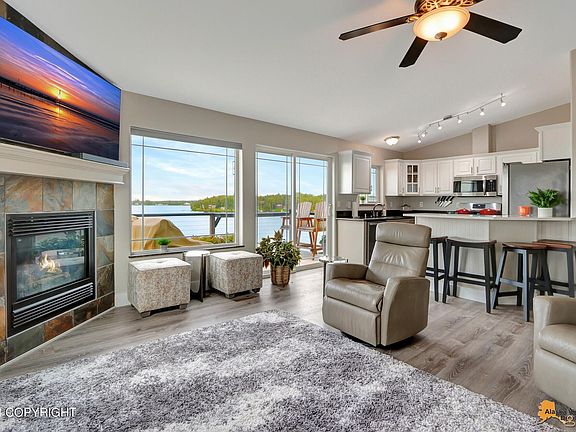 Lakefront condo with stunning balcony views of Big lake and Denali! Seller's loan is ASSUMABLE at 3% interest! This property is perfect for both summer and winter activities and is within walking distance of Susitna Brewery. Conveniently located just minutes from the airport and grocery store this home is a family getaway haven. Modern and elegant finishes, fully remodeled in 2022.New appliances, on demand water heater, in floor heating, and kitchen island! This community is gated and private with a 20x20 dedicated boat slip with room for jet skis.