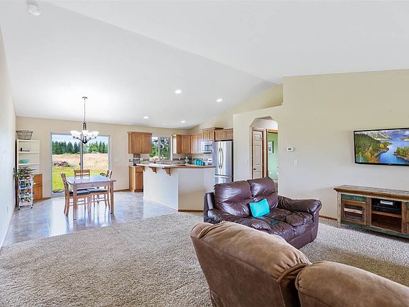 Are you wanting more than just 6 feet of distance from your neighbors? This beautiful 2013 built home sits on 5 acres and offers amazing views and has its own gardening space. Inside you will find an open concept living area/ kitchen. The main floor has 3 bedrooms and 2 bathrooms. The semi-finished basement has incredible potential to be completed! You will find two fully finished bedrooms, a half finished bathroom, and so much more space for a home gym, office, storage, or more bedrooms. Unique features of this home include a private outdoor shooting range, it is not within the Fairchild flight line, and there is a walking trail bordering the entire property. Showings will fill up fast, so book yours today. Make sure to bring a cup of coffee to sip on because once you see the views, you will want to stay awhile!