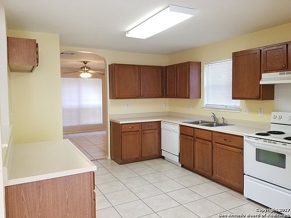 Great location. Easy access to IH 35, Forum shopping center, minutes from Randolph AFB and Fort Sam-BAMC. Excellent opportunity to purchase at exceptional price for the area and do your own updating. Seller has priced this home to move. Open floor plan down stairs with lots of tile. Formal dining room will be perfect for upcoming holiday dinners. Upstairs has large game room for entertaining or media area. Looks as though the city is extending the park to the greenbelt behind the home.