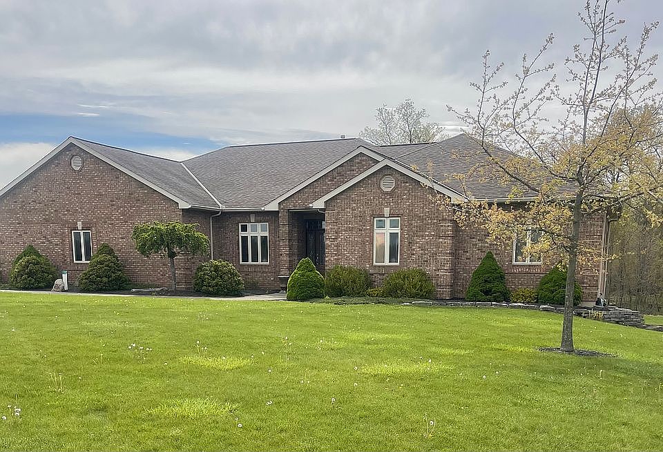 Welcome to 15303 Ramga Rd, a stunning property nestled on a 5-acre lot. Boasting over 4000 square feet of living space, this single-story brick ranch with a lower-level walkout features 4 bedrooms, 3 full baths, 1 half bath with a 3-car attached heated garage. This home is custom built by the owner featuring cathedral ceilings, recessed lighting, cherry custom cabinets, wood blinds, hardwood floors, ceramic tile & 6 panel oak doors throughout. The master suite has 2 large walk-in closets, his/her sinks, jacuzzi tub and walkout deck. There are endless opportunities for entertaining with multiple family rooms, eat-in kitchen with a panty, formal dining with a tray ceiling, step down sunroom, game room and a home office/5th bedroom. This custom build has 2x6 exterior walls and an additional 1100 square foot man cave and multiple storage rooms. Step outside to enjoy a large yard, 2 patio areas, a playhouse, 3.5 acres of woods perfect for outdoor fun and a 44x60 wood framed building with concrete foundation, floor drains, plumbed for a bathroom & a wood burning fireplace. Don't miss the opportunity to make this beautiful custom-built home yours! Call or text me 513-316-0242