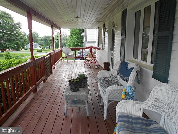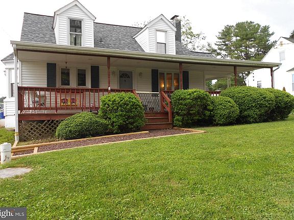 Come see this inviting porch front cape cod featuring 3BR & 2 BA, including an en-suite bath. Warm up in winter in the cozy living room with wood burning stove. Or eat your family meals in the large formal dining room. Enjoy your morning coffee in the breakfast nook in the kitchen. Updated kitchen boasts tile floor, all appliances, lots of cabinets & extra counter space too. Side door off driveway makes it easy to get groceries in the house. There is a main floor bedroom w/ceiling fan. Convenient full bath on main level too! Hardwood floors throughout main level. Upstairs is master bedroom with en-suite bath; and a second bedroom or office. Downstairs is unfinished basement that houses washer/dryer, well equipment, water softener, new acid neutralizer & lots of storage. The lovely back yard is level & totally fenced. It includes a peach & cherry tree that produce edible fruit. A storage shed is present to store your lawn equipment. The extra long driveway will hold 6+ cars. New architectural roof too!