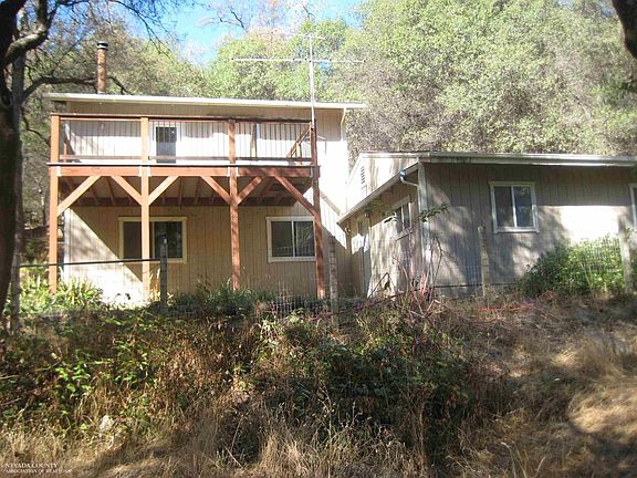 Very affordable, cute two bedroom home in private, wooded setting, with year round stream. This home is in the desirable Squirrel Creek subdivision of 5 acre parcels. Only 1.5 miles to Penn Valley and 4 miles to downtown Grass Valley. Enjoy the quiet solitude of this secluded area. This 2 story home has the bedrooms on the lower level and the kitchen, bath and living room/dining room combination on the main level. Newer laminate wood flooring in main level. Seamless stone kitchen counters. Cozy wood stove and propane wall heater provide plenty of heat in the winter and a mini-split wall air conditioner keeps it cool in the summer. Newer trex deck off living room with nice wooded views. Dual pane Windows throughout. Central vacuum. Inside laundry. The 2 car garage currently only has room for one car, with the offer half used as a shop.