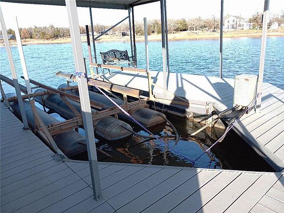 Lake lovers dream -- Beautiful 1-acre waterfront property with floating, covered boat dock, boat lift, and boat ramp. Dock has an extra wide fishing platform. Enjoy a cup of coffee and watch the sunrise over this panoramic view of the lake from the covered deck. Lots of updates in the home. 30x30 detached garage has concrete floor, wiring, insulation, and half bath. Nice storage shelter, canopy for kayaks, and fire pit. Land is owned by the City of Shawnee and leased on a 30-year renewable lease. Current annual lease rate is $776. 15-20 years financing available at local bank.
