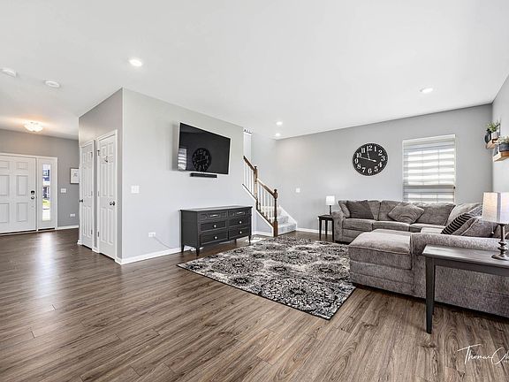 Move-in perfection awaits in this upgraded Cahill model! Built just 2 years ago and boasting a transferable 10-year builder's warranty, this home surpasses the competition with stunning vinyl floors throughout the first floor. Enjoy a convenient flex room, perfect for your needs, which opens to a large family room ideal for entertaining. The gourmet kitchen wows with ample cabinets, quartz countertops, and stainless steel appliances, featuring a spacious eat-in area with a 2-foot bumpout for even more comfortable dining. Unwind in the oversized master suite featuring a walk-in closet and spa-like bathroom. Two generously sized secondary bedrooms with walk-in closets provide ample space for family or guests. Don't miss the spacious loft, owner will convert to 4th bedroom or leave as a second entertaining area, playroom. The full unfinished basement offers potential for future expansion, while the fenced yard and gorgeous stamped concrete patio create your own outdoor oasis. With designer touches throughout, this meticulously maintained home is truly move-in ready - all you have to do is unpack and enjoy! Highly acclaimed Plainfield North High School.