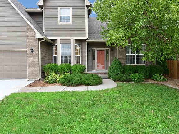Gorgeous 5BR, 3BA, home in desirable East Wichita and in the Andover school district. This home has been meticulously cared for. Hard wood is throughout the main floor and grand stairway. There is a beautiful hearth room off of the large kitchen/dining room, living room and formal dining room. Kitchen has beautiful oak cabinets, granite counter tops, large island, an extended area by the sink for your herb garden and is open to the dining/living room. Formal dining room sits off the living room and could be used for dining, or as an additional sitting area or perhaps a music/piano room. Master suite has double sink, whirlpool tub, separate shower and large walk in closet. Three more bedrooms and a bathroom are on the upper level, along with the laundry room. The large family/rec room, 5th bedroom and full bath finish out the basement. This grand home totals 3350 square feet of living space. The back yard has a large wooden deck along with a patio-perfect for those summer BBQ's and for entertaining friends. With a 3 car garage equipped for maximum storage, this home has everything you could need, ready for your family and new memories.