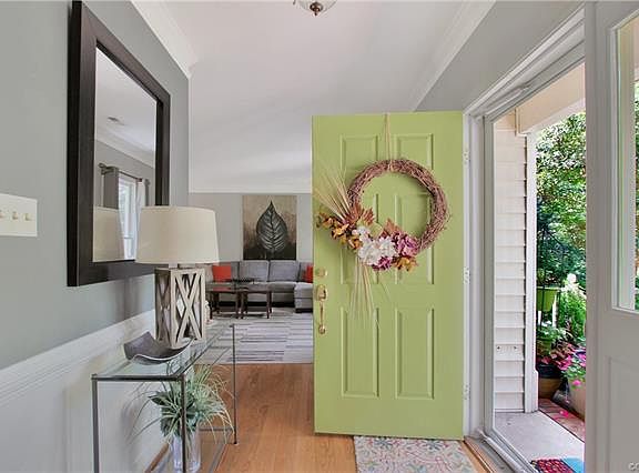 Wonderful 4 bedroom, 2.5 bathroom Transitional in Foxcroft! As your enter this home from the foyer, you find a lovely living room space with crown molding and wood flooring. The living room open to the dining room also with wood floor, crown molding and chair rail and bay window. The beautiful eat-in kitchen is updated with high end cabinetry, stainless appliances, granite countertops, tile back splash, wood flooring and a nice sized pantry. Off the kitchen is a family room with wood floors, vaulted ceiling, skylights and gas fireplace. Upstairs there is a spacious master bedroom with walk-in closet, large updated en-suite bathroom with tile floor, soaking tub and separate shower. There are three other nice sized bedrooms on the second level as well as a hall bathroom and laundry room with folding area. The walk up attic is huge and could become finished living space. Enjoy your coffee from the screen porch as you listen to the fish pond fountain and watch the deer jump over your backyard fence. Cul de sac street! All appliances convey! New roof in 2016! Great neighborhood with walking trails, pool, tennis and clubhouse!