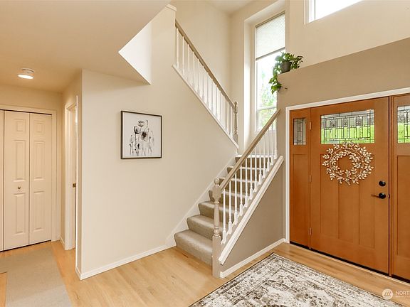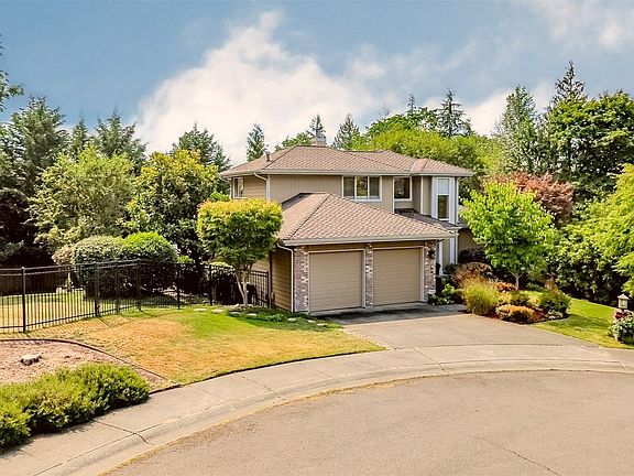 Nestled on a tranquil, private .4 acre cul-de-sac lot, this custom home features vaulted ceilings, hardwood floors & impeccable details throughout. Gourmet kitchen opens to the breakfast nook & family rm w/gas fireplace. Enjoy morning coffee in the jacuzzi located off the main floor primary en-suite w/updated luxury 5 piece bath. Fully fenced backyard w/mature landscaping & XL deck is perfect for BBQ’s & entertaining! Other features include: Formal dining & living rm w/fireplace, updated 1/2 bath, fresh paint, A/C, garden shed, sprinkler system, 2 car garage w/storage & no HOA! Conveniently located to I-405, Renton Landing, golf, parks, shopping and restaurants. Don’t miss this beautiful move-in ready home!