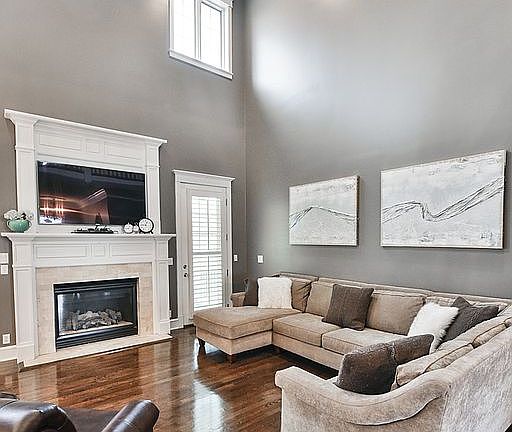 - Living Room Desc: Hard Wood Floor, Fireplace, 9'+ Ceiling