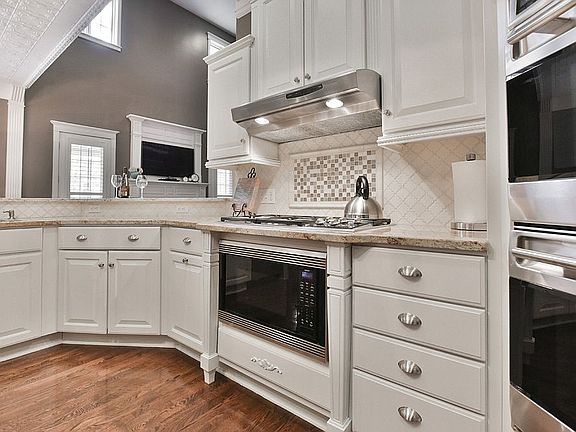 This sophisticated and luxurious retreat features panoramic lake views enjoyed from the wrap around Trex Deck front porch. The sprawling 1.5 bedroom floorpan includes two commercial kitchens with granite counters, newly remodeled master bedroom with refinished antique cast-iron clawfoot tub and walk-in California Closets. This gorgeous home was updated with new paint in 2016 to showcase beautiful architectural features not found elsewhere. Quality finishes throughout the home include designer light fixtures; custom door Hunter Douglas plantation shutters, custom cabinetry with stainless Wolf/Sub-Zero appliances; hardwood floors; 72 face weight Stainmaster carpet replaced in 2016; solid wood 10 foot doorways and extensive crown moulding throughout the home. Laundry is conveniently located in two areas, the master closet and on the top floor. Enjoy the expansive Trex Deck overlooking the professionally landscaped back grounds with heated private pool. The estate also features a gas fire pit as well as a natural gas line connection for outdoor cooking. Quality construction and maintenance is unmistakable from the finishing touches to the concrete sideboard siding to the multi-zone heating and cooling systems for maximum efficiency.