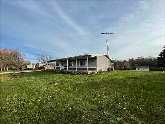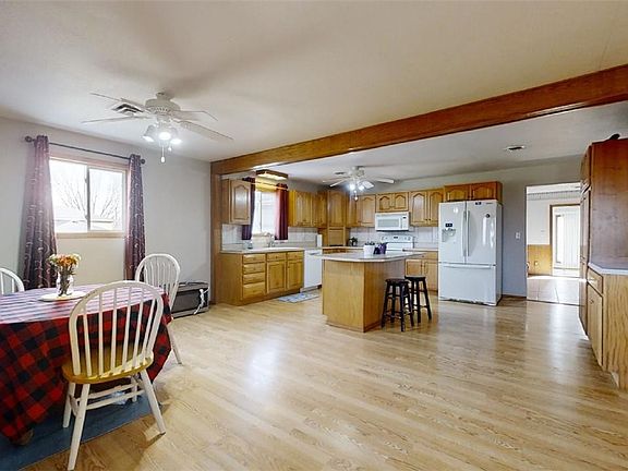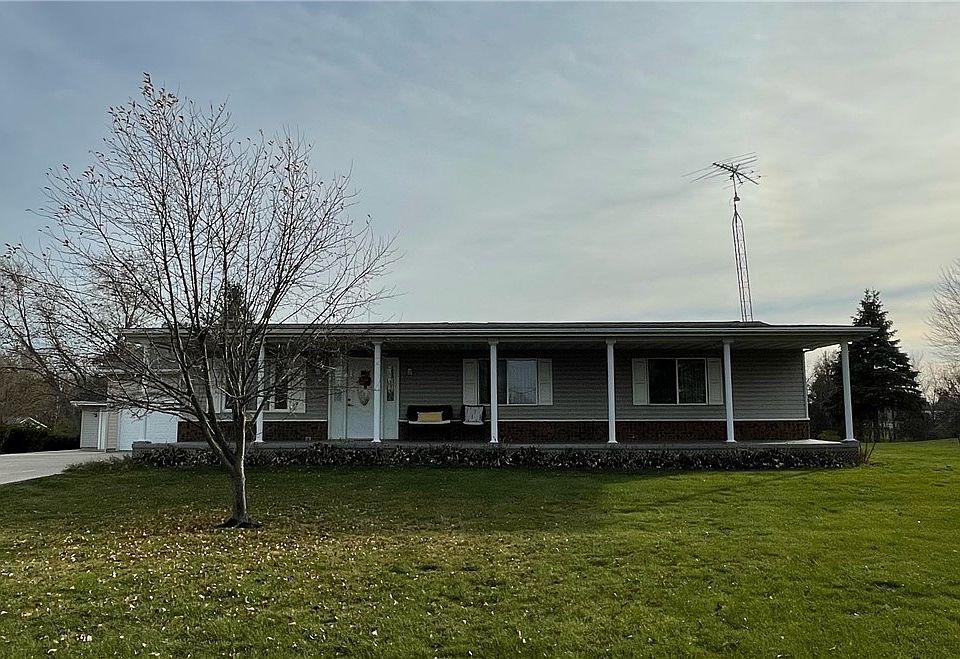 Your country paradise awaits! Sitting on over 1.5 acres this sprawling ranch offers incredible space both inside and out starting with the inviting front porch. You'll instantly fall in love with the open kitchen and dining area highlighted by a center island and plenty of cabinet and counter space. Relax and unwind in the spacious living room featuring a double sided fireplace leading into the bonus sunroom with incredible views! The huge laundry/mud room provides amazing storage solutions. Down the hall, the primary bedroom boasts neutral tones and a private full bath. The two guest bedrooms both offer great closet space and share a third full bath. Need more? Outside, you'll find a 2 car attached garage plus 4 car detached garage and a huge bonus shed! Take in all the amazing country views from the huge back deck. Check out this impressive move in ready home today!