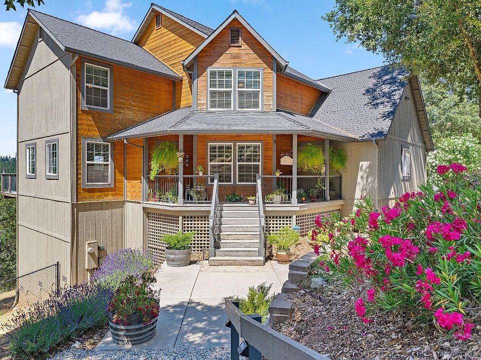 Discover your dream home in the Alta Sierra community. This turnkey two-story gem features high ceilings, ceiling fans throughout, and dual-pane windows with newer coverings. The kitchen has granite countertops, a gas range, and a cozy dining area. Enjoy the convenience of a laundry room with built-in cabinets and a newer whole-house fan. The property offers low-maintenance landscaping with a drip system, concrete walkways in the front yard, additional renewed parking, and a newer Tuff Shed for storage. The attached 2-car garage includes a new EV charging station. Relax on the cute, cozy covered front porch or entertain on the large back deck and enjoy the stunning views. The fenced yard is perfect for dogs, and the bedrooms are spacious, including the primary suite that takes in the view. With a spacious unfinished basement, extra parking, and an optional HOA, this home offers space and flexibility. The great elementary school nearby makes it ideal for families. Experience the best of Alta Sierra living. Don't miss out on this exceptional property! Neighboring 6.3 acre vacant parcel to be sold with the home, making it just over 8 acres in total!