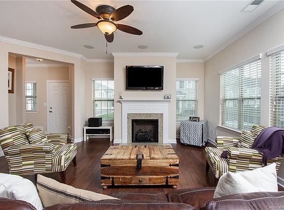 Enjoy the all that Ballantyne has to offer while living just minutes away in the Riviera Community. Warm and inviting covered from porch greets your guests when they arrive. Large open family room highlighted by gleaming wood floors, gas log fireplace and tons of natural light. Breakfast bar keeps the kitchen open to both the dining room and family room. Rich 42" cabinets, granite countertops, and stainless steel appliances - complete with gas stove, making entertaining a breeze. Laundry room is on the first floor just off the entry to the two car garage. Upstairs master retreat is complete with sitting area and spa inspired bath featuring separate shower and soaking tub. Secondary bath offers a walk in closet and private bath. Welcome home to Riviera!