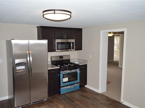 Fresh throughout including paint, light fixtures, carpeting, laminate floors, new kitchen cabinets, counters and appliances. The bathroom is also new and there is a 1st floor laundry........... just pack the truck and move right in!The yard is fenced and has both an enclosed front porch or awesome covered back patio for all your summer grilling events.