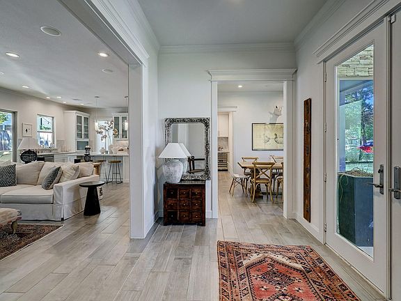 Summer kitchenCovered patioSoaking tubLarge island kitchenMature treesOpen concept livingDual vanities
