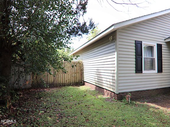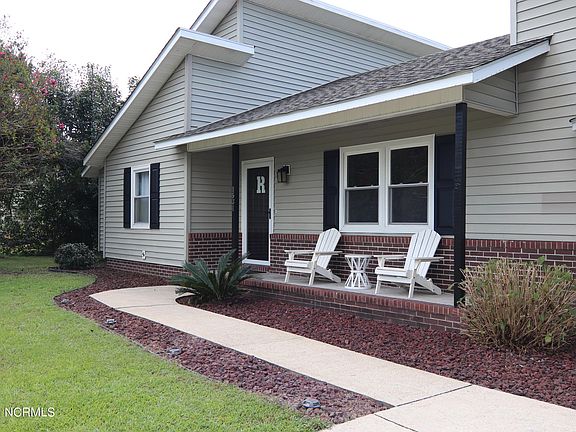 Home Sweet Home! Are you looking for plenty of space and a large yard? Thinking of getting chickens or goats? Then, don't miss out on this 3-bedroom ranch style home situated on over a half-acre with a large bonus room and storage shed! Conveniently located near Camp Lejeune gates, shopping, restaurants and beaches. Best of all, there's NO city taxes or HOA! As you pull into the driveway, you'll be welcomed by the home's unique and stylish design along with simple but elegant landscaping. The colorful flowers on crepe myrtle tree will catch your attention as you head onto the inviting covered front porch. Step inside onto beautiful laminate flooring that flows throughout the main living area. The living room features a floor-to-ceiling brick fireplace that's perfect for warming up on those chilly evenings. The hallway to the left leads to 3 bedrooms and 2 full bathrooms, with the master bedroom and bathroom in the back of the home. From the living room, you'll enter the kitchen and find attractive white cabinets, a stainless-steel stove and dishwasher along with an upgraded faucet and black refrigerator. Lovely French doors, that open up to the big backyard, allow lots of natural light to pour into the dining room. Off the dining area is a large bonus room that's perfect to use as a gym, play area or second living room!The storage shed in the back offers plenty of extra storage space. The backyard offers privacy as it's partially enclosed with a 6-foot wooden privacy fence. The yard continues behind the fence to offer space that's perfect for chickens or a garden! Schedule a showing today before this one's gone!