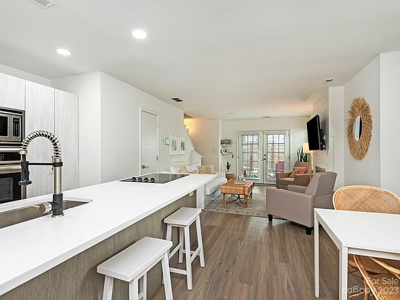 Charming modern farmhouse style townhome in Commonwealth Park. This two-bedroom unit boasts an open floorplan, luxury vinyl tile flooring downstairs, shiplap wrapped fireplace and neutral decor. The sleek kitchen features European style cabinetry, quartz countertops, and stainless steel appliances. Upstairs, you'll find two generously sized bedrooms, each with its own ensuite bathroom. The primary bedroom offers a serene retreat, complete with a walk-in closet and bathroom with oversized shower. The second bedroom is equally delightful and offers versatility, perfect for use as a guest room or home office. Fenced in rear yard with beautiful landscaping is great for entertaining. Proposed future expansion of City Lynx Gold line with a stop at Briar Creek. Minutes to Plaza Midwood/Uptown as well as easy access to Independence.