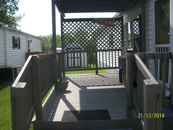 Quiet setting & pvt. Well cared for park for 55+ age group. open liv/DR area, built-in hutch, Stove, frig, washer & dryer..Enjoy the large deck to relax with a cool drink. Roof is 7 yrs. young, NEW Water Heater, and NEW Furnace. Also NEW carpeting in livingroom/dining room. On cul-de-sac. Close to shopping, restaurants, 490 & 390. Next to Town Hall. Incl. trash pick up, snow removal, water & taxes in your monthly lot rent.