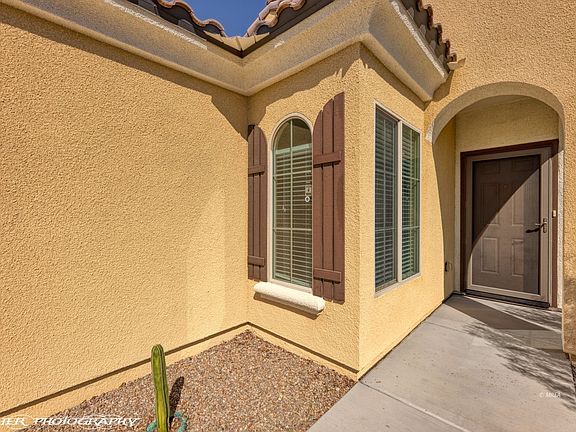 Flawless & move in ready! This warm & inviting home is situated on an oversized premium lot w/lots of natural light and views of the Flat Top Mesa and is fully fenced. Every aspect of the home boasts upgrades including the spacious garage w/4 ft. extension, overhead storage, custom built-in cabinets, water softener, along with a 24 ' long extended driveway. Rich cherry paprika cabinets flank the Kitchen with custom pull-out shelving, granite countertops, stainless steel appliances and additional overhead cabinets in the laundry room. Diagonally laid tile throughout the home w/plush carpet in the 2 bedrooms plus den. This popular Lilac floorplan has a spacious living room leading to the backyard with covered patio and ceiling fan. Set your eyes on the custom built waterfall feature designed to be the Piece De Resistance, an oasis in the desert that showcases an abundance of greenery & large foliage providing privacy and separation. Huge Plus, the SID balance is PAID IN FULL. You will not want to leave! (Click on the "view virtual tour" link under other interior features to see the Fly Through Video)