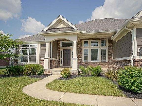 Welcome home! This beautiful 3 bed, 2.5 bath ranch with a basement in Bellbrook is ready for it's new owner! Gorgeous curb appeal, with fantastic stone work on the exterior & you'll love the front porch. Upon entering, you're greeted by dark wood floors sweeping thru-out the living areas. With high coffered ceilings in the living room, this house feels so much bigger. The kitchen boasts of SS appliances & granite countertops. It opens seamlessly to the breakfast room & the living room. Plus, there's a formal dining room! The primary suite is situated on one side of the house with oversized full bath, tiled shower, & walk-in closet. Two additional bedrooms are on the other side of the house featuring a Jack & Jill bath. Plus, laundry is on the main floor. A full unfinished basement provides a blank slate options. Relax & enjoy on the covered back porch. Don't miss your chance to own this one!