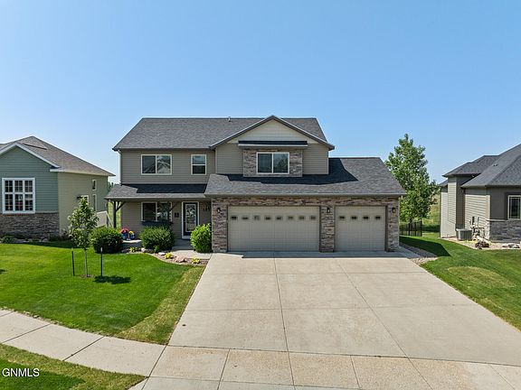 Welcome to this stunning two-story home nestled in the highly sought-after Creekside Ridge Subdivision, where breathtaking southwest views of the ridge await you. This meticulously maintained property boasts beautiful landscaping, complete with charming flower boxes, a brand-new deck, elegant pavers, and a sleek black fence. Enjoy the convenience of underground sprinklers, an oversized three-car garage, and a walk-out basement, making it the perfect setting for summer barbecues and family gatherings.