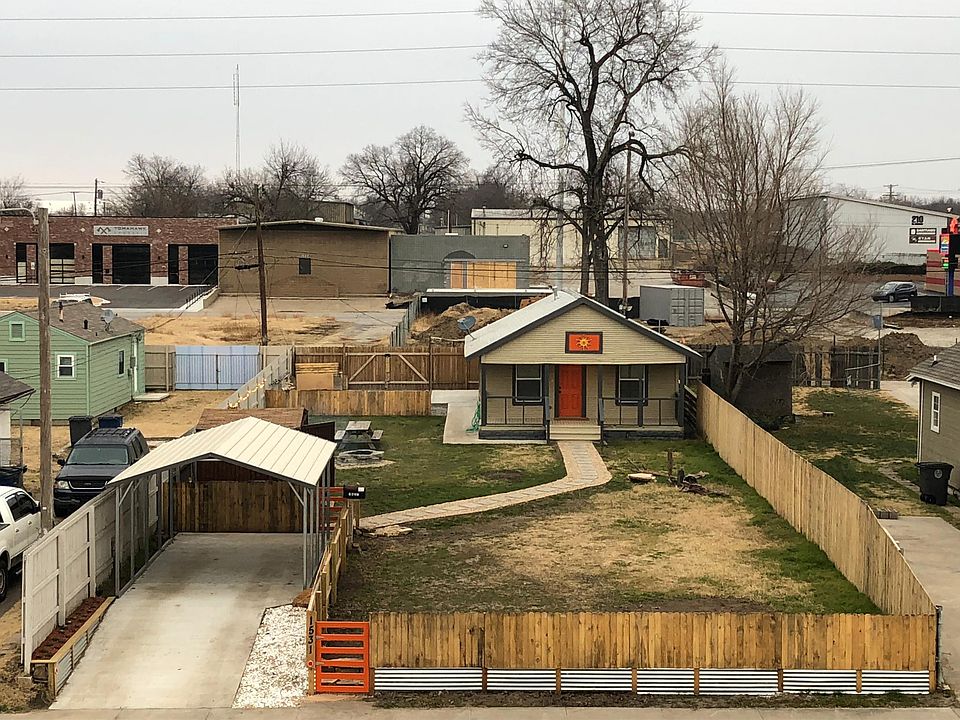 Charming 2 Bed/1 Bathroom Craftsman bungalow sitting at the back of a large double lot. This property is located in a super convenient location and is zoned for mixed use. Huge living room, hardwood floors, large windows Large fenced lot with alley access with privacy fence. House sits at the back of the lot. New driveway with covered parking Direct back alley access New outdoor storage shed with plenty of utility space House is freshly updated with new interior and exterior paint, new windows, kitchen and bathroom tile, new HVAC Includes Refrigerator, Range and Oven, Washer and Dryer Pet friendly with $200 deposit per pet up to $400 Location: 3 minute bike ride to Midland Valley Trail 10 minute walk to 6th street s Pearl District 6 minute drive to Guthrie Green and the Brady Arts District 11 minute drive to the Gathering Place 5 minute drive to the University of Tulsa Tenant pays utilities.