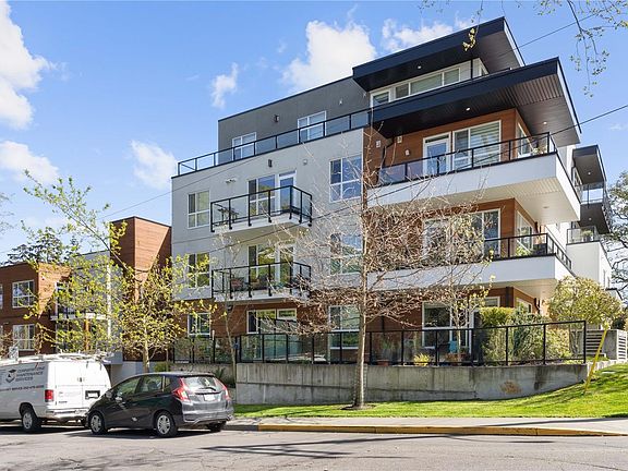 A rare offering in the heart of Fernwood - this top-floor home is truly one-of-a-kind, with no neighbors on either side or above, ensuring maximum privacy and tranquility. With no shared walls, this near-new 2-bedroom + den home is a peaceful retreat featuring 9 ft ceilings and a bright, open-concept layout on the desirable west side of the building. Enjoy the afternoon sun from your private, west-facing deck or host gatherings on the expansive shared patio on the same level. You're in a pet-friendly building with separate secure storage and underground parking. Ideally located within easy walking distance to all the charm of Fernwood Village, Oak Bay, cafés, Urban Grocer, and other amenities. Take a stroll downtown for more restaurants and shopping. Transit is nearby, and Stadacona Park is steps away with its tennis courts, mature plantings, and new 2023 playground. This home offers an exceptional blend of comfort, convenience, and value.