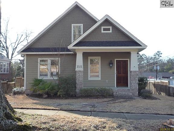 Located in a charming, established neighborhood only 2 miles from USC and the State Capitol, this cool home fits the "newer home in an older neighborhood" model that many folks want. Built in 2007 and located across the street from a small public park and featuring a hardi-plank exterior, this home has a big master suite with a large private bath on the first floor, a very "open" floor plan, and a huge covered back porch with a cathedral ceiling. The first floor features high ceilings, hardwood floors in the living areas, a beautiful kitchen that opens to the great room and the dining area, a laundry room, and a half bath. Upstairs, there are 2 big bedrooms and another full bath. Inside, there is new carpet in the bedrooms and some painting has been done recently upstairs. There's plenty of parking behind the house, and the owner usually parks there and enters through the kitchen door from the covered porch.