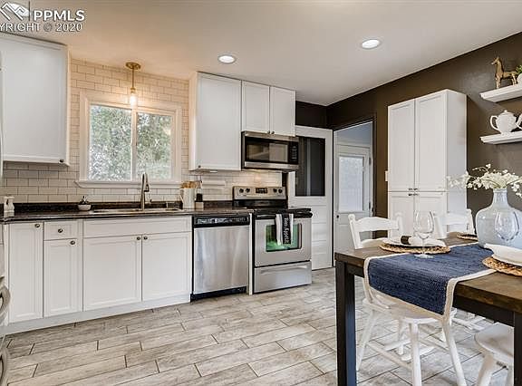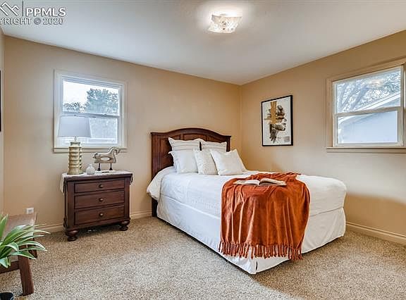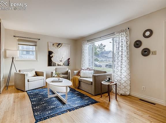 You will love this gem of a home tucked away on a quiet street with a beautiful view of the mountains from the backyard. Very private, lush backyard with two parking spots in the driveway from back alley private entrance. Three bedrooms on the main level and one on the basement. This home has been lovingly updated. Please notice the open kitchen / dining room area, original hardwood floors and luxury main level bathroom. Basement has great storage room and youll love the large laundry room / craft room / hobby room. Three bedrooms up stairs and one downstairs, with a bath on each level. Plenty of room for everyone. An abundance of charm awaits you. Great location with easy access to downtown, OTC, Prospect Lake and Memorial Park, and I-25. This one will go fast so dont delay!