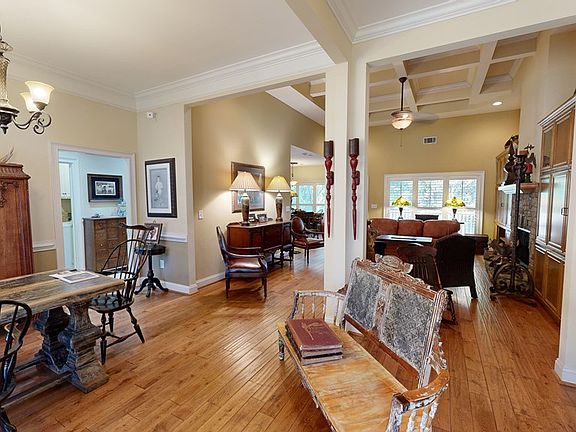 Beautiful home in North Columbus, on a corner lot, with a adorable welcoming front porch! The combination of cement siding and stone gives this home a unique, and appealing look. The interior features such as the open living room, gorgeous coffered ceilings, stone fireplace, wood floors, plantation shutters and built ins. The spacious master suite has additional bonus room suitable for an office, sitting area, gym or a nursery. The large master bath features a jacuzzi tub, walk in shower, separate his and her sinks. HUGE walk in closet and private watering closet. The kitchen with custom cabinets, granite countertops, stainless steel appliances, and a walk-in pantry is a chefs dream. Plus, the large wood deck and small fenced backyard provide a perfect space for outdoor lounging with min yard work. This home offers both comfort and elegance! Great area convenient to I-185 for easy access to Ft Moore (Ft Benning). Close to shopping and restaurants.BACK ACTIVE..NO FAULT OF HOME/SELLER