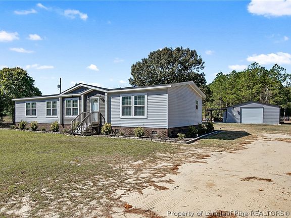 Get ready to be amazed! This 3 bedroom 2 bathroom home has been beautifully decorated AND has so many extra features. A large deep stainless steel sink in the kitchen island is a definite upgrade. Cabinets have great storage and organizational features to include a tiered cabinet for spices or anything else you need to see more clearly. The kitchen boasts a large pantry and granite countertops. The bedrooms are all good sized rooms and larger than normal closets. The 3.11 acre lot has a 1250 square foot building for workshop or garage that has high speed internet, sink and an air condition window unit to help with those really hot days. The owner upgraded the Spectrum internet service to have it run to the house and the out building. The foundation piers are also upgrades and should meet any lender requirements for manufactured homes. Schedule a showing today!