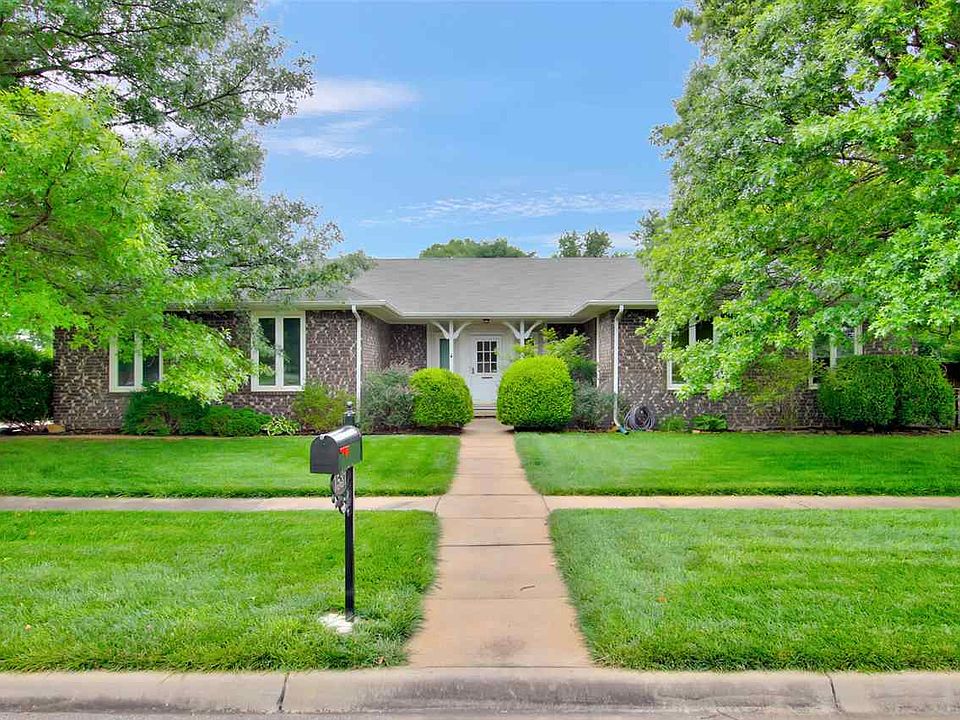 This spacious, all-brick, ranch home in MAIZE SCHOOLS has lots of room to spread out. Three bedrooms, three full baths and laundry on the main floor. All kitchen appliances remain with property, with new flooring, countertops and sink. Living room is spacious with gorgeous wood beams and wood-burning fireplace. The basement has a large family room with 2nd fireplace with daylight windows, additional finished room would make a great office or non-conforming 4th bedroom. There is also a Huge, unfinished storage space that would make a fantastic theatre room! Outside, the home sits on a corner lot, is fully fenced, beautiful landscaped with mature trees, sprinkler system and irrigation well, new deck last fall, and 2 year old storage shed with concrete foundation. This home has been lovingly maintained and is ready for a new owner, plus this terrific, west-side, neighborhood is close to shopping and dining, come take a look!