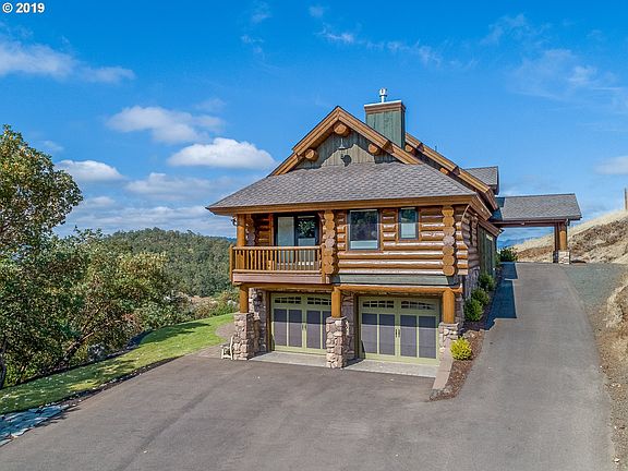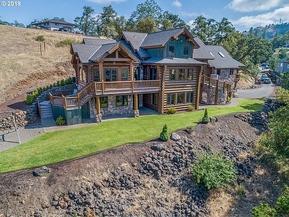 The ultimate luxury log home overlooks the city on a hill in great location. High quality, no expense spared, you must see this home to appreciate. Gorgeous gourmet kitchen w/island. Large dining w/coffee bar. Master suite on main floor. Fantastic billiards room w/bar. Theater room, wine cellar. Decks and patios for outdoor entertaining. Large loft w/bedroom & bath, great for guest quarters. Private, gated & includes RV hookups.
